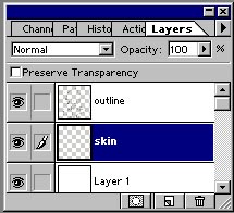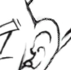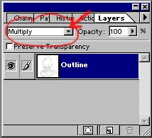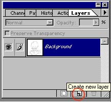 -Make sure the Layers box is open on the right hand side (Window> Show Layers). It should have a tiny thumbnail of the picture you're working on along with "Background" as the title of it. Holding the left-click button, drag the "Background" over the "Create New Layer" icon as shown in the picture. It should show that there are two layers now, "Background" and "Background Copy." Delete "Background" layer by dragging it to the little trash can at the bottom right of the layers box, or by right-click. (Note: It might be a good idea now to start renaming your layers to avoid confusion later on. You can do this by right clicking over the layer you want to rename. I will now refer to the "Background Copy" simply as "Outline.") Create a new layer (Layer 1). Make sure this layer is underneath the "Background Copy" layer. Select the paint bucket tool and choose white as your color. Select and fill "Layer 1" with white. This will act as a Background until you decide what you really want as your background. Now make sure you select the outline layer. In the same file folder box that contains the Layers section, there should be a Channels section that you want to select now; if it's not there, go to Windows> Show Channels. There are little icons at the bottom of the Channels table. The furthest one to the left is the one you must click now, which will select everything white on the outline layer. Press delete and deselect (Select> Deselect) the moving dotted lines. You may notice now that nothing changes except the picture itself looks a little light. Now go back to the Layers section. Select the outline layer. Right above it there are the words "Preserve Transparency" (5) with a tiny box to the left of it. Click on the little box and make sure there's a check on it. Now select a large size brush and with black as your color, go over all the lines shown, which if executed correctly, will make the lines a little darker. That’s it for this part. Don't worry if it seems kinda difficult, it did for me at first, but after a few tries it only takes seconds, really ^_^. 6. Outline the quick and easy way: Make sure the Layers box is open on the right hand side (Window> Show Layers). It should have a tiny thumbnail of the picture you're working on along with "Background" as the title of it. Holding the left-click button, drag the "Background" over the "Create New Layer" icon as shown in the picture. It should show that there are two layers now, "Background" and "Background Copy." Delete the "Background" layer by dragging it to the trashcan, or by right-click. (Note: It might be a good idea now to start renaming your layers to avoid confusion later on. You can do this by right clicking over the layer you want to rename. I will now refer to the "Background Copy" simply as "Outline.") Right above "Outline," on the same table in the Layers section in small font it should have the words "Normal" on it with an arrow to the right of it. Click on the arrow and select "Multiply". Everything white on the layer will become transparent, allowing you to add color from another layer underneath it, without messing up the outline. (Keep in mind this will work correctly only if you keep the Background Copy/Outline as the first layer on top at all times!) 7. Coloring: Now we can begin the early stages of coloring. First, we must section off each color on separate layers, so they will be easier to color later on when you want to darken, add highlights, etc. It is important that you do not use the magic wand tool to speed things up. This will leave numerous blank spots throughout the cg, which you do not want to do, trust me ;). Create a new layer underneath the outline Make sure the layer has the "normal" setting, especially if you're going to use the quick way to make your outline transparent. I am going to color the skin first. Since I am adding color to only to the skin on this layer, I would label the layer "skin". Now select a color that closely resembles a medium flesh color. This will be the base color. On the left side bar with all the tools, there is a lasso tool. Right click and hold the mouse over the lasso tool, and a selection of different lasso tools will show up. Select the "Polygonal lasso" tool (in the middle) now. ![]() Zoom in really close and with the lasso tool follow carefully along the black edges of the outline for the skin. Try not to go "outside the lines" so to speak (^^). When you meet back with where you first started with the lasso, the marching dotted lines will appear. Now either Right-click and Fill or Edit> Fill. The area you selected with the lasso should now be filled with the skin color you selected. Deselect. ![]() You have just finished one layer of coloring. Using the same steps I have shown you for the skin layer, create new layers for each separate color used in your picture in which I have done here, labeling them blue, yellow, black, and white, along with my skin layer. Just remember to have none of the layers above the outline layer. 8. Shading: Now it's time to add depth to your character by adding dark and lights to add dimension. I like to color cel style, which is a technique, derived from how cels are painted in actual cartoons by blocking off colors in sections. Usually these have a light, medium, and dark color for each separate color used. I will color the blue first, but you can color whichever layer you want first. I have now selected the blue layer. Click the "Preserve Transparency" box. This allows you to only color parts that are blue on that layer, without going over what is transparent. You can tell from this little demo what the differences are by having the Preserve Transparency box on or off. Now choose a shade of blue that is a couple shades darker than the medium tone that you already have. ![]() -Cel style: Select the pen tool and turn the rubber band option on under pen options. Zoom in really close and section off a part you want to be made darker. Now righ